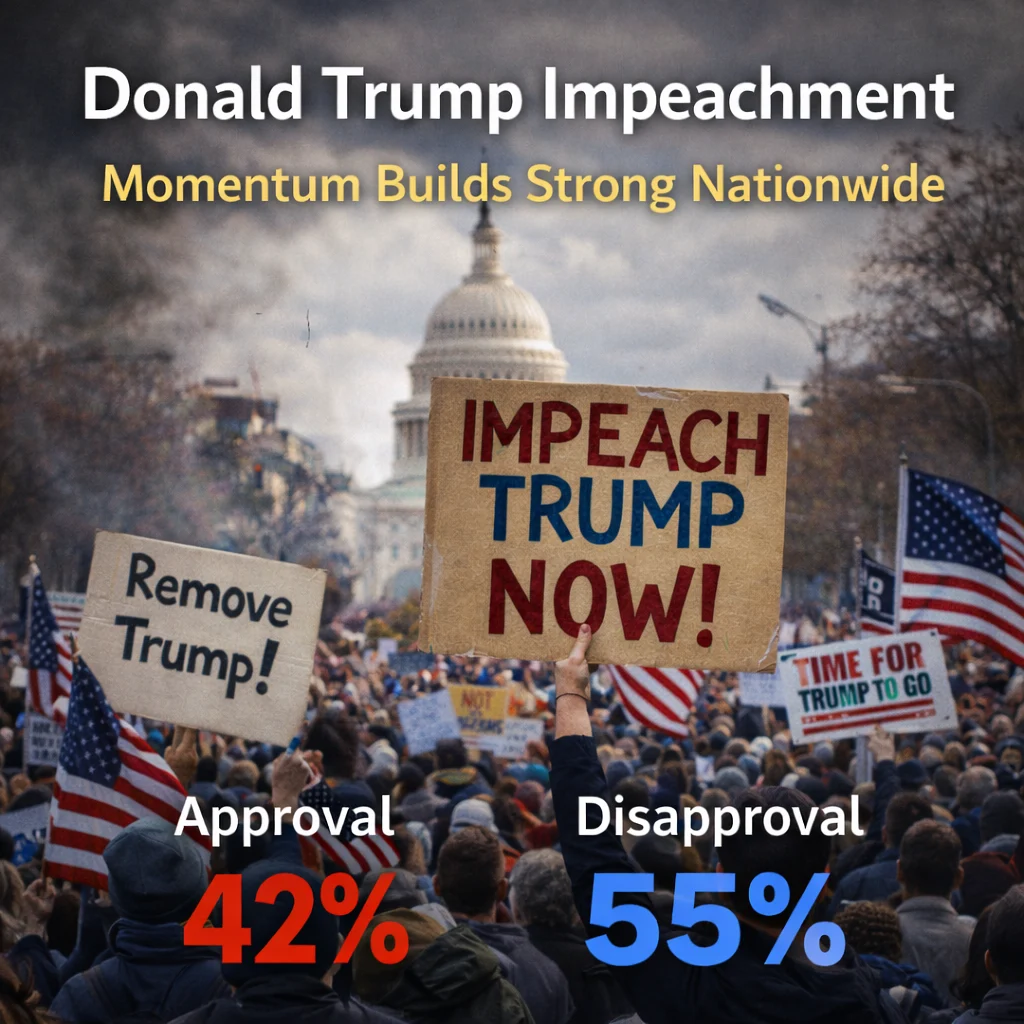 Donald Trump Impeachment as the United States barrels toward the 2026 midterm election. The political landscape is intensifying with historic protests, sharp declines. In public support for President Donald Trump, and renewed talk of impeachment. All against the backdrop of deep national polarization and fierce congressional battles.